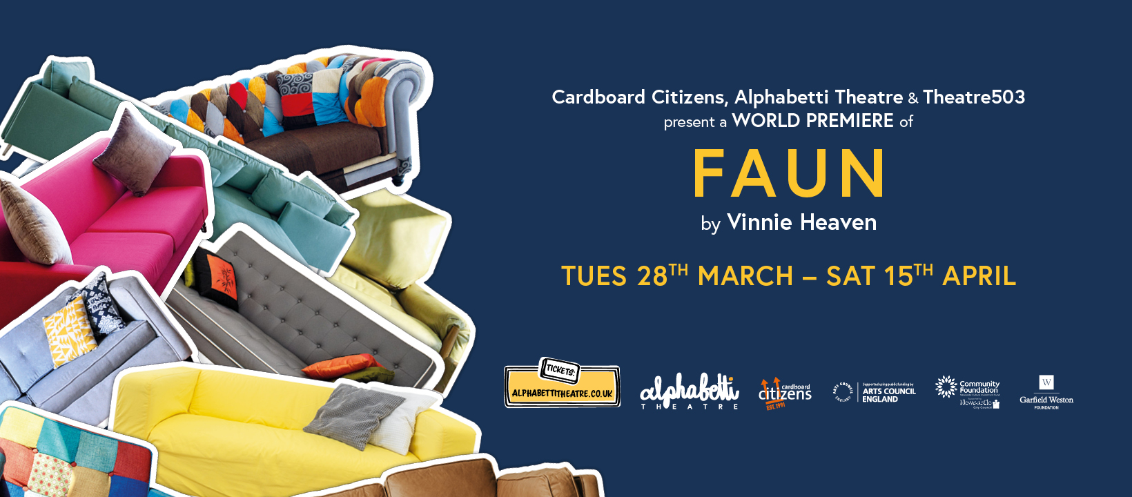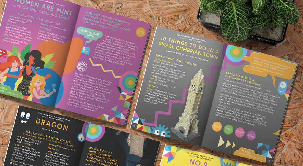 Working with the amazing award winning team at Alphabetti and an illustrator to bring together the upcoming season of shows. Starting with a cover image by the illustrator and and the odd picture we create brochures, social media assets, beer pump clips and OOH.